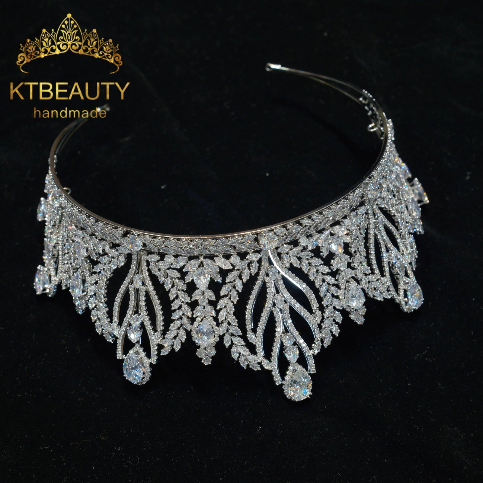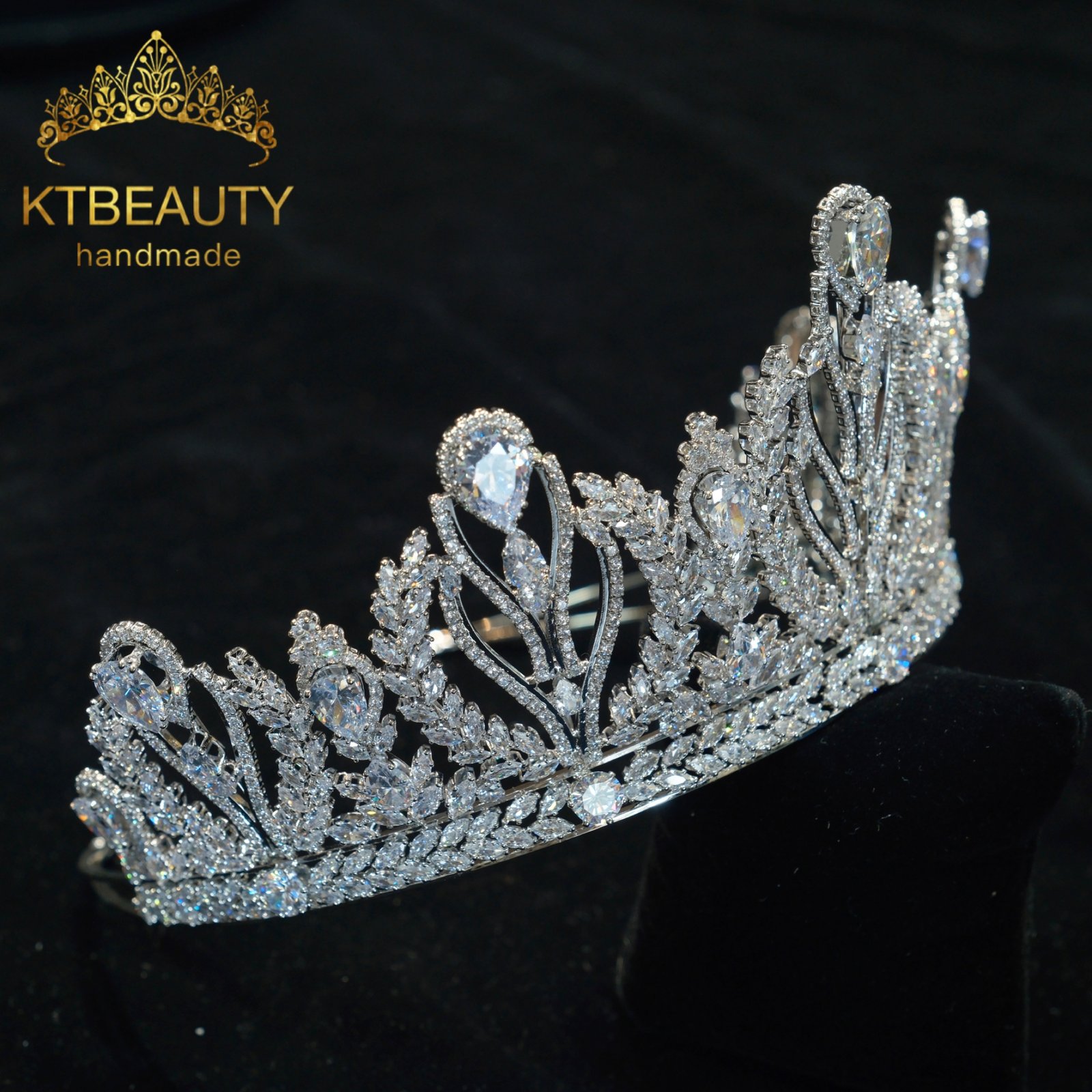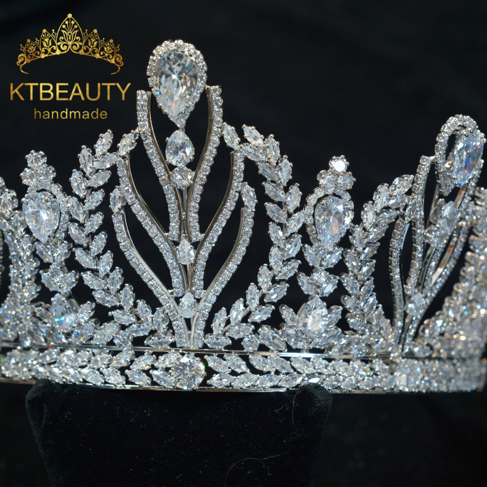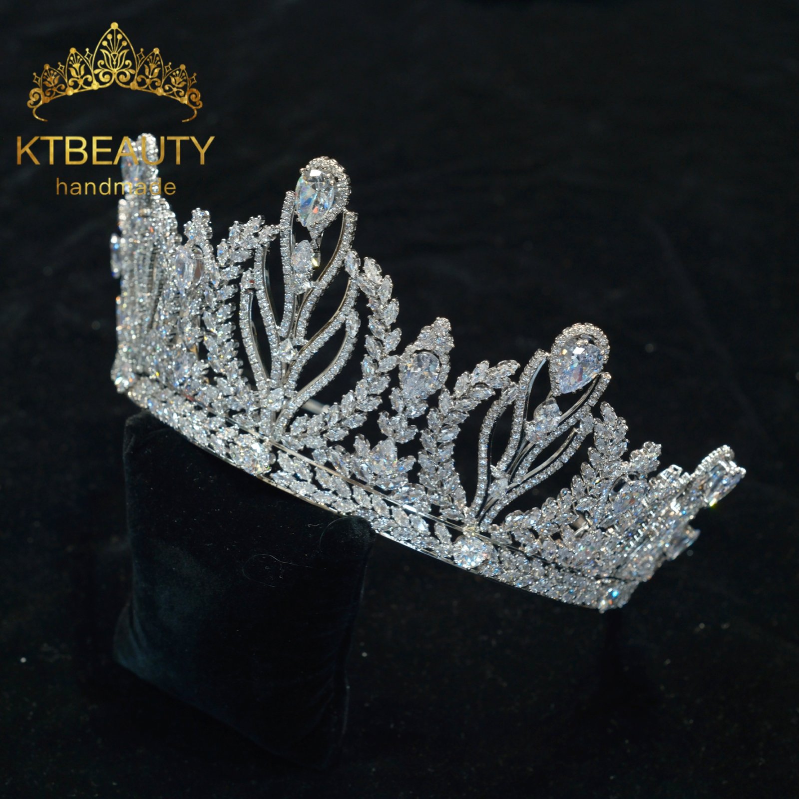 KTBEAUTY Handmade Luxury Zircon Bridal Crown Silver Sparkling Wedding Tiara Crystal Headpiece for Bride Banquet
