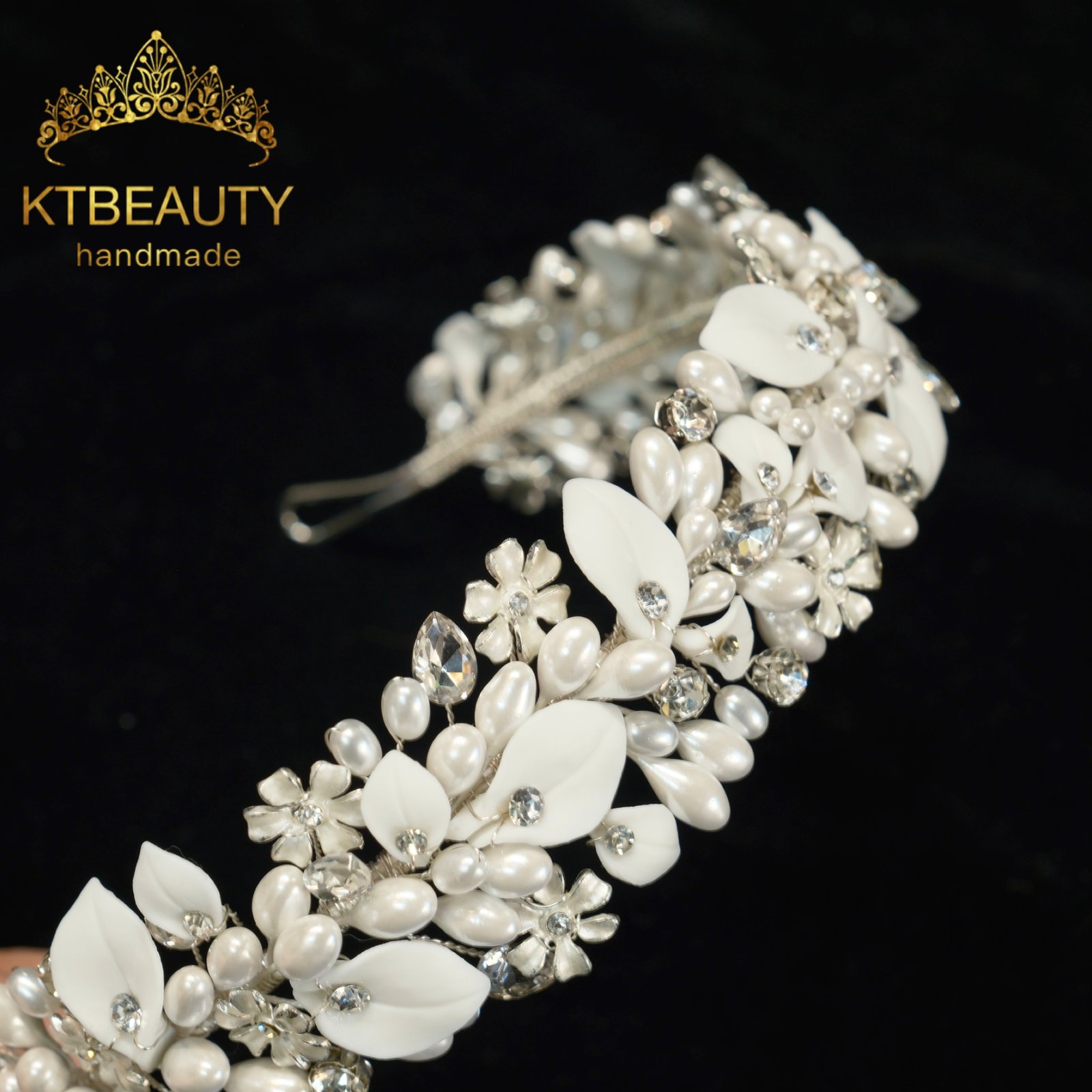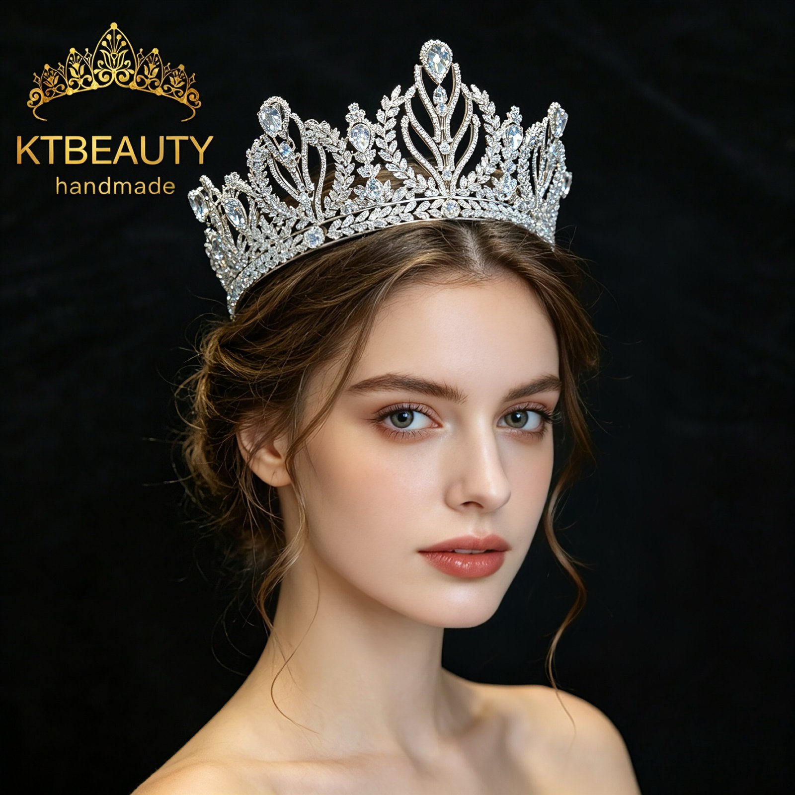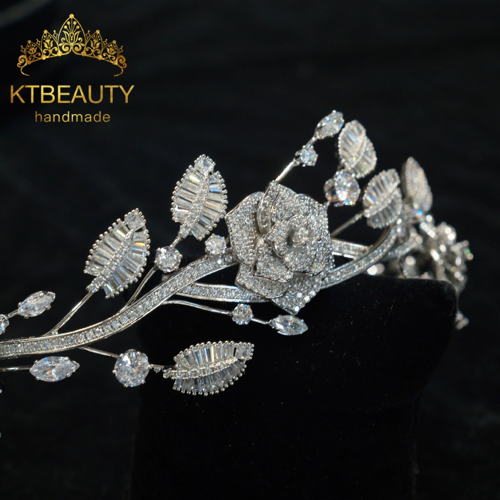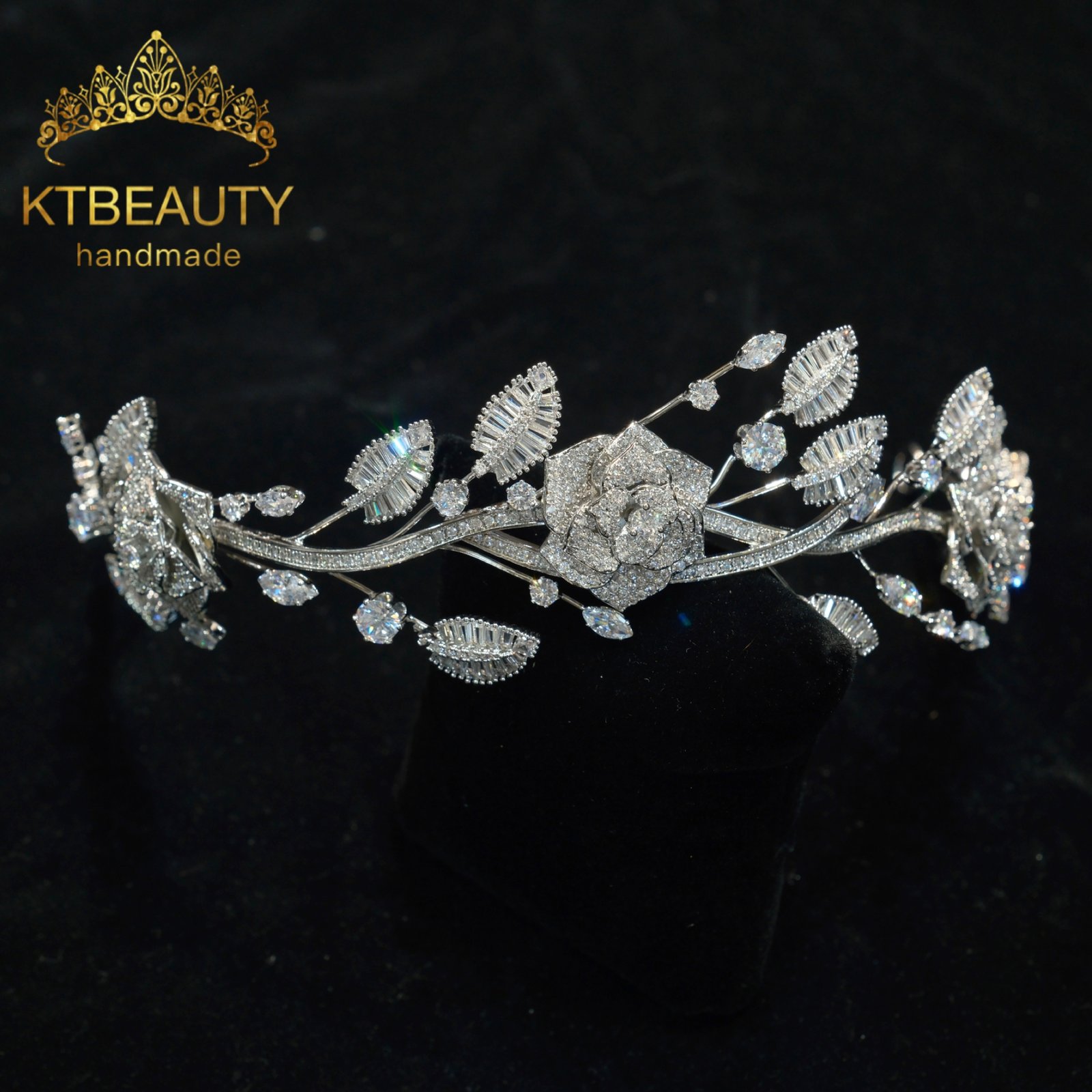 KTBEAUTY Handmade Silver Floral Rhinestone Bridal Hair Vine Luxury Zircon Leaf Wedding Headpiece for Bride Boho Formal Occasion Hair Accessories