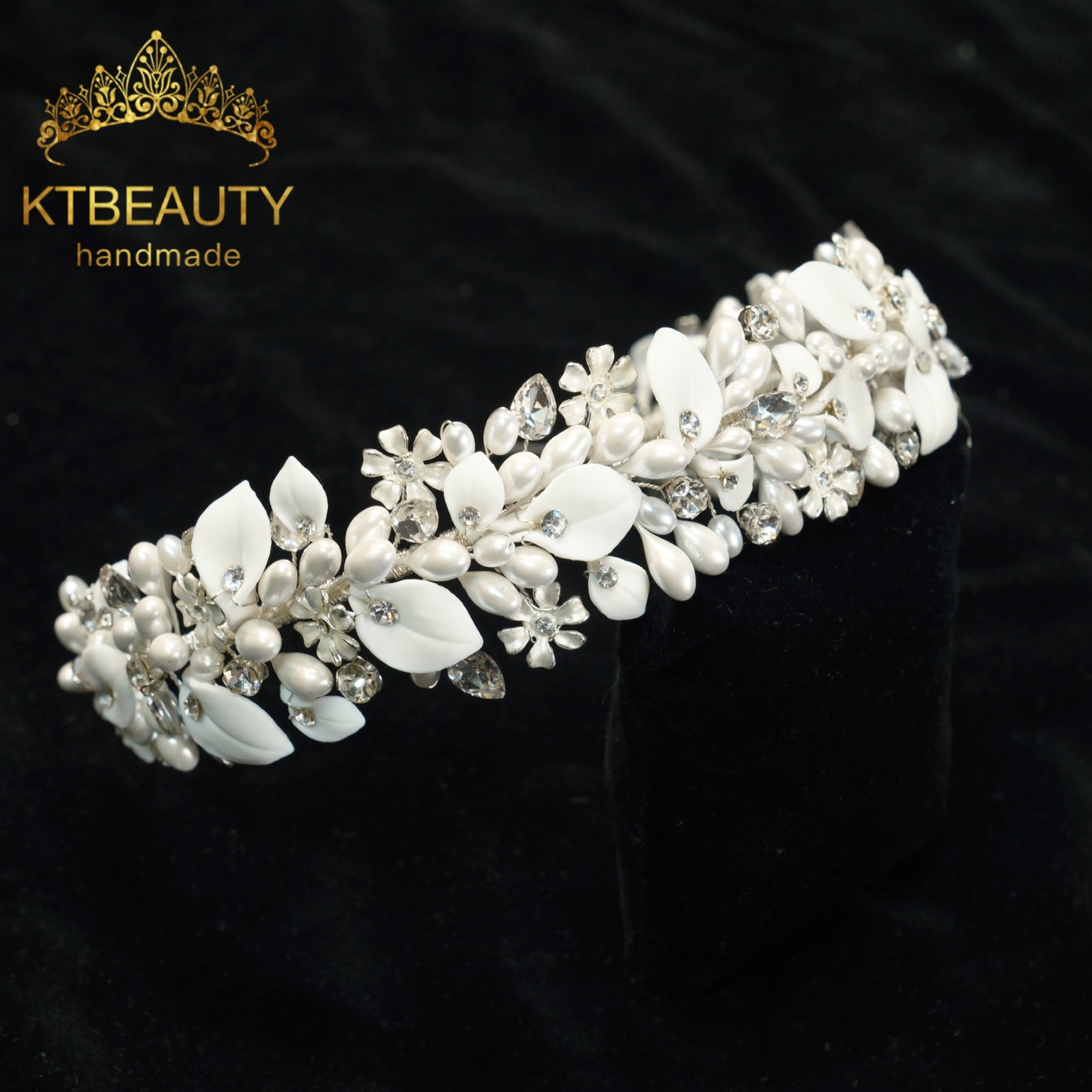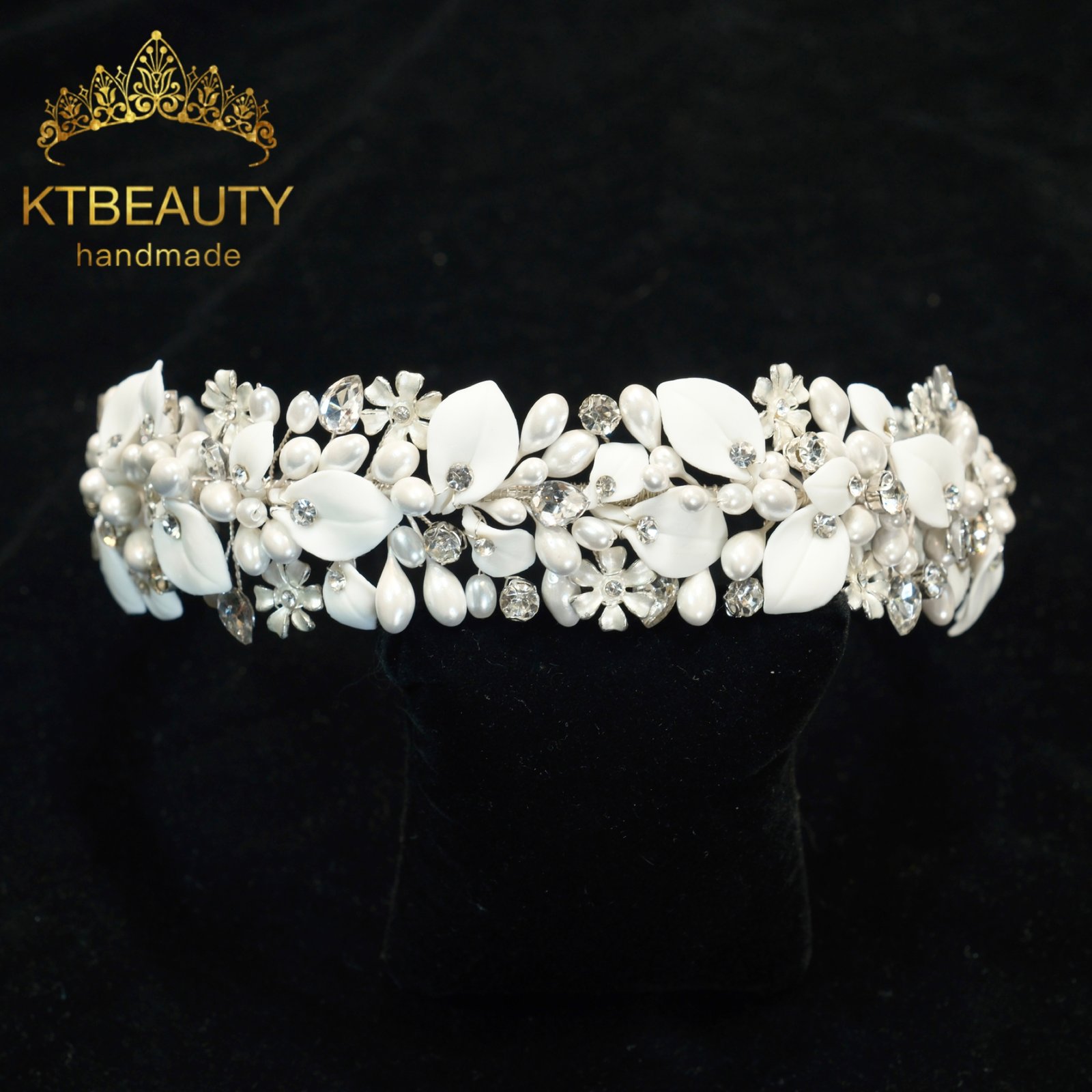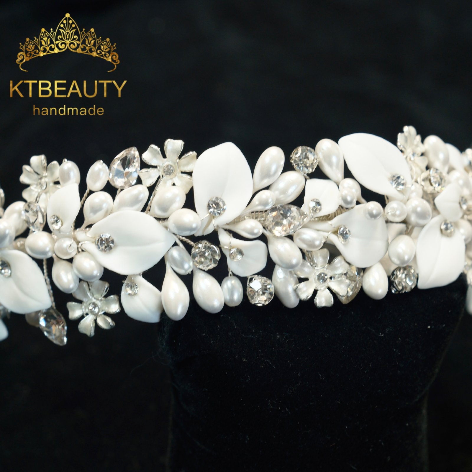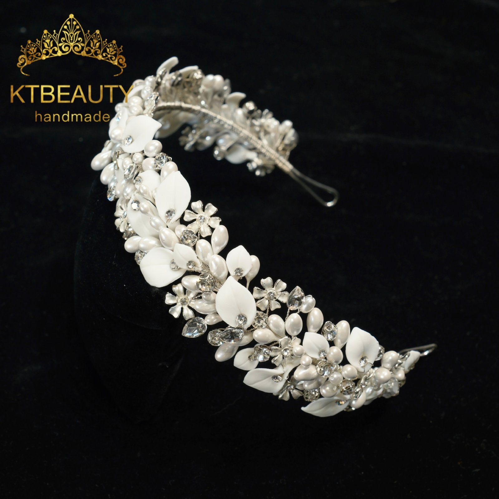 KTBEAUTY Handmade Silver Floral Rhinestone Bridal Hair Vine Luxury Zircon Leaf Wedding Headpiece for Bride Boho Formal Occasion Hair Accessories