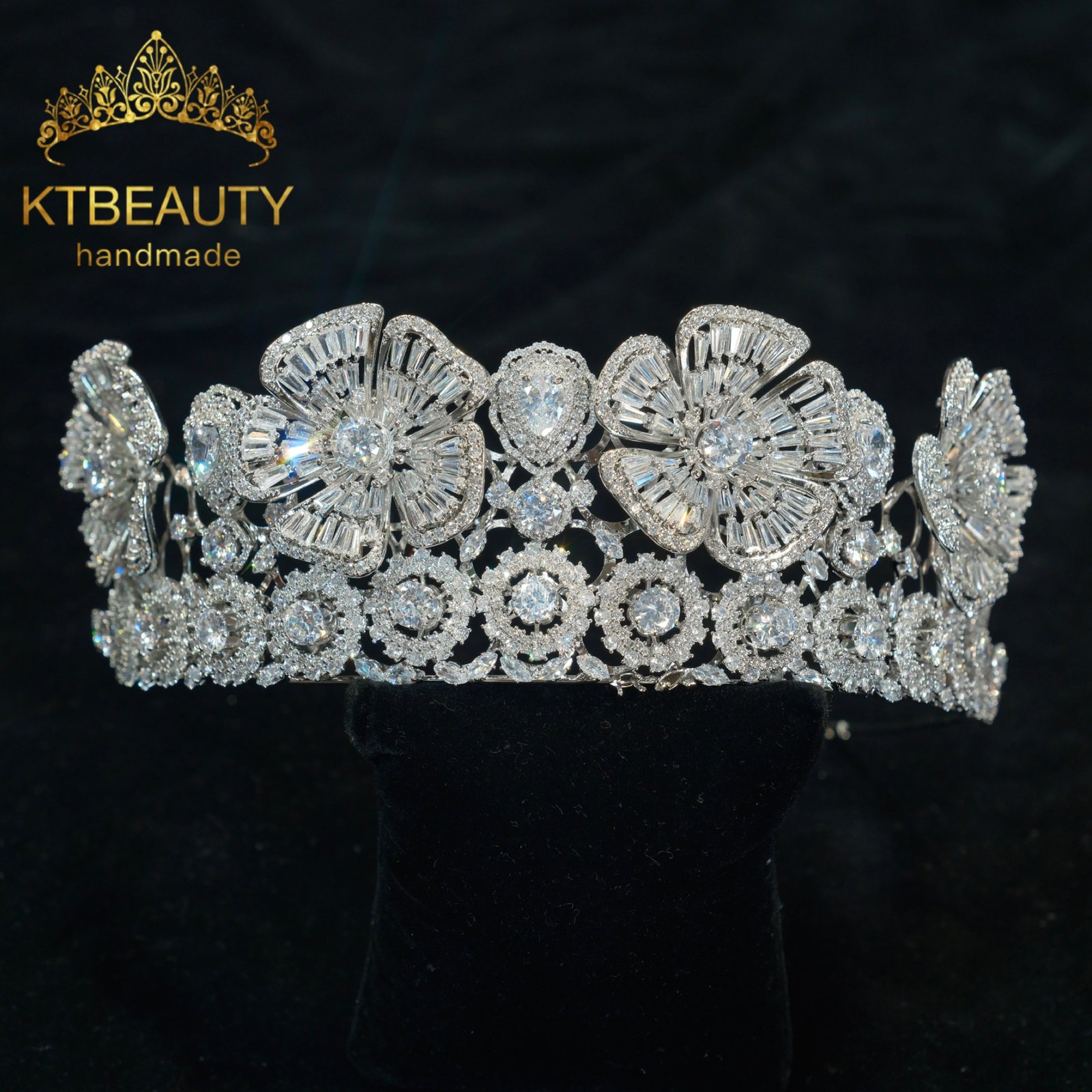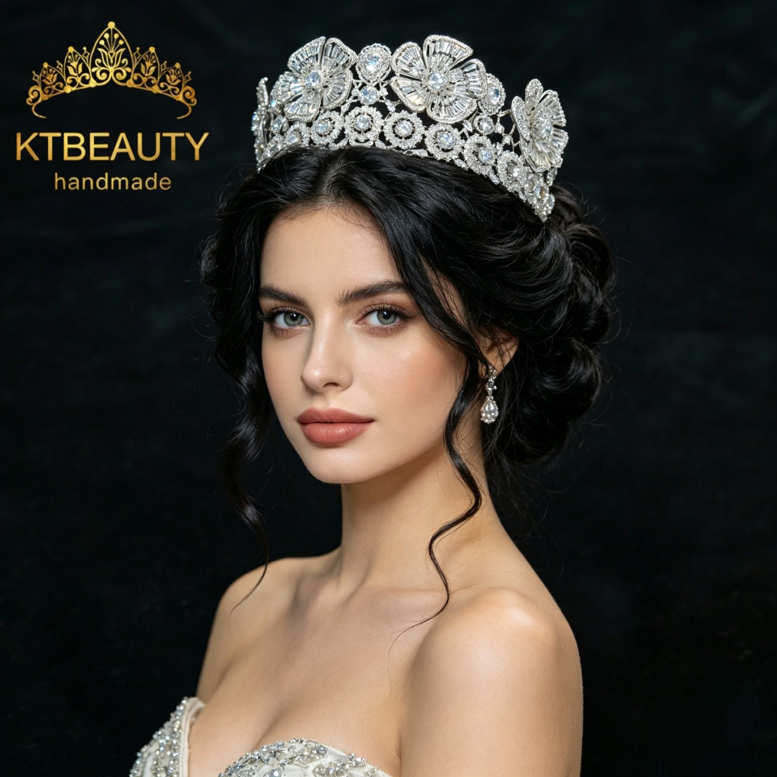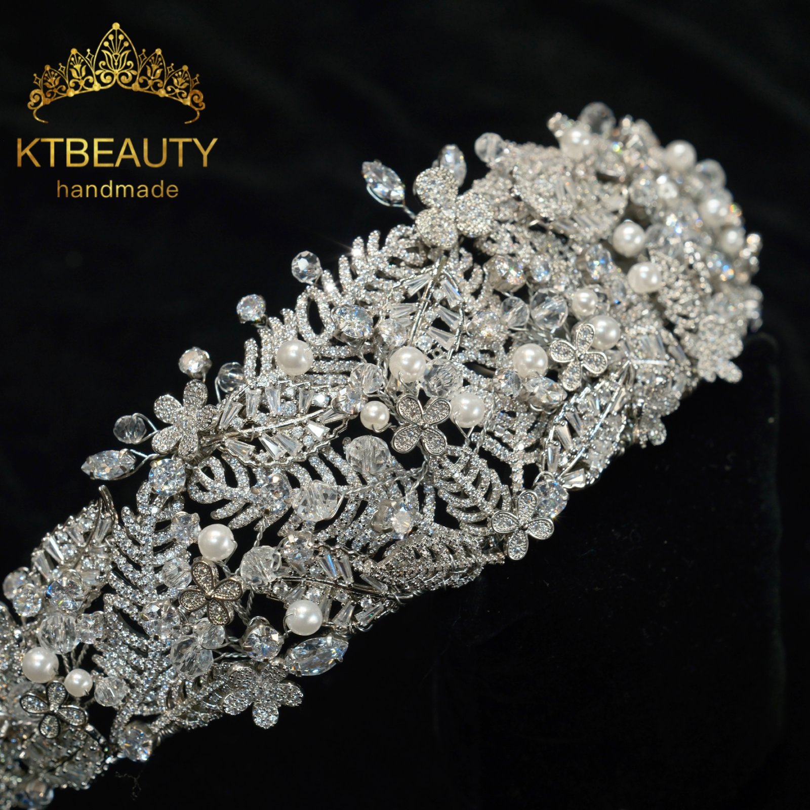 KTBEAUTY Handmade Silver Floral Rhinestone Bridal Hair Vine Luxury Zircon Leaf Wedding Headpiece for Bride Boho Formal Occasion Hair Accessories