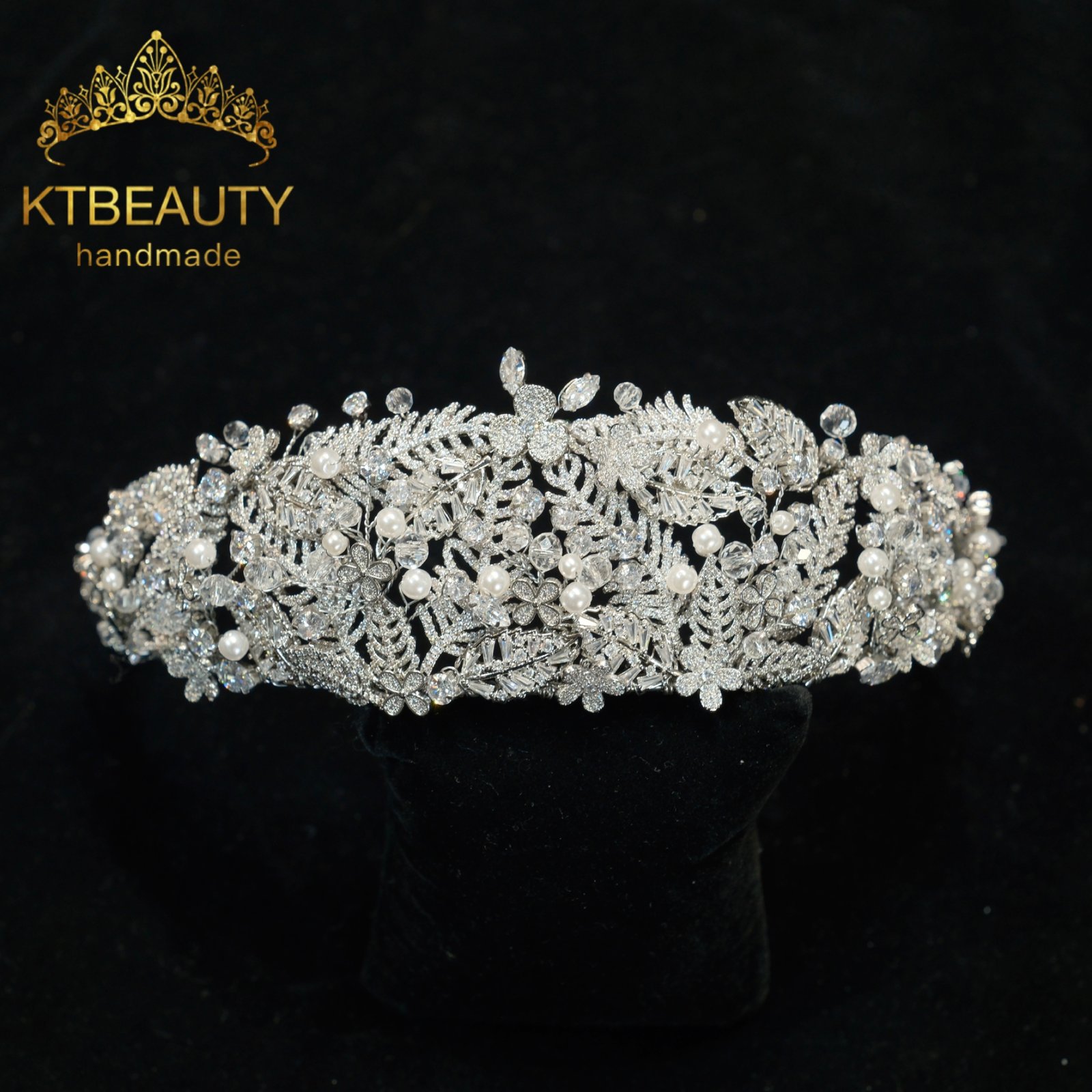 KTBEAUTY Silver Plated Bridal Headpiece Luxury Zircon Flowers Leaf Wedding Accessories For Brides And Bridesmaids